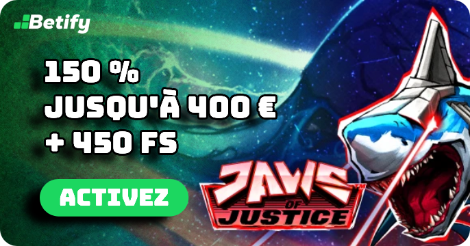 Betify casino est une plateforme licenciĂ©e lancĂ©e en 2024, offrant un divertissement sĂ©curisĂ© et certifiĂ© Curaçao aux joueurs du monde entier. Avec plus de 3 100 jeux, des missions passionnantes, des courses de rouleaux, du cashback hebdomadaire et un systĂšme VIP avantageux, Betify allie plaisir, Ă©quitĂ© et paiements rapides avec facilitĂ©. Profitez de votre bonus de 150 % jusquâĂ 400 ⏠ainsi que de 450 tours gratuits sur Jaws of Justice et rejoignez-nous dĂšs maintenant !